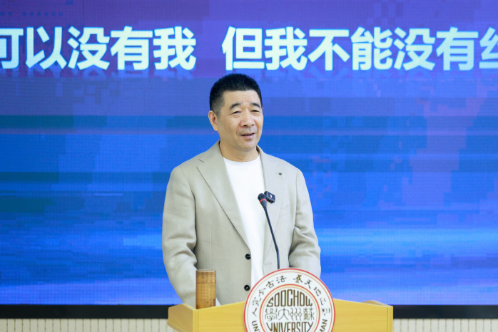 张桥校长在开场致辞中,对李建华校友重返母校表示热烈欢迎,并感谢直播平台 及相关职能部门的精心组织。他表示,纺织丝绸产业早已突破传统印象,成为永远时尚、永远现代的朝阳产业,李建华校友四十余年深耕丝绸行业,兼具多重跨界身份,始终坚守丝绸事业、心系母校发展,用坚守与热爱诠释了苏大校友的精神风范,为青年学子树立了可亲可学的榜样。他强调,校友是苏大最温暖的力量源泉,学校会持续搭建平台,让榜样引领成长,希望同学们积极传承丝绸文化与创新精神,以榜样为引领,在专业学习中勇攀高峰,接过丝绸荣光传承的接力棒。